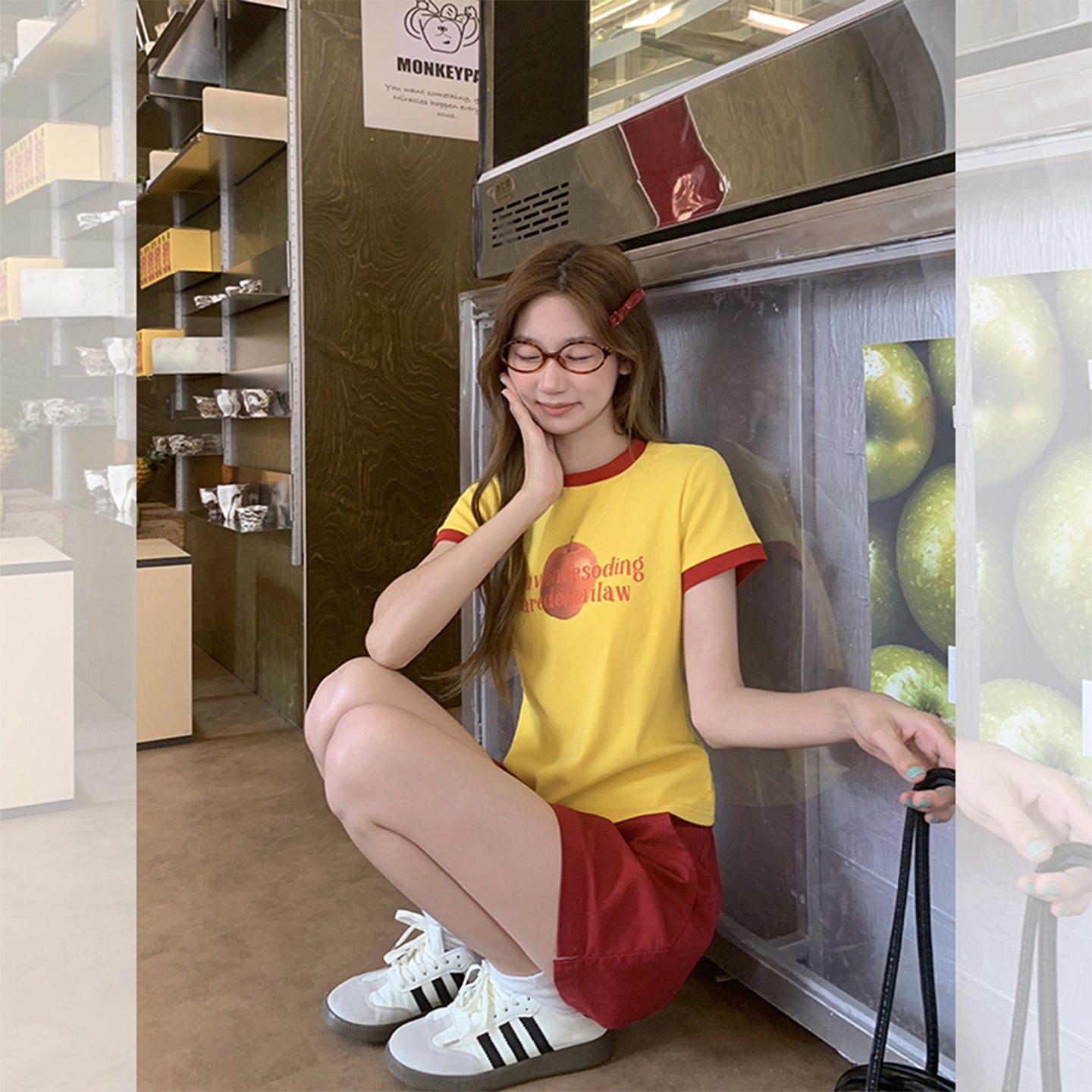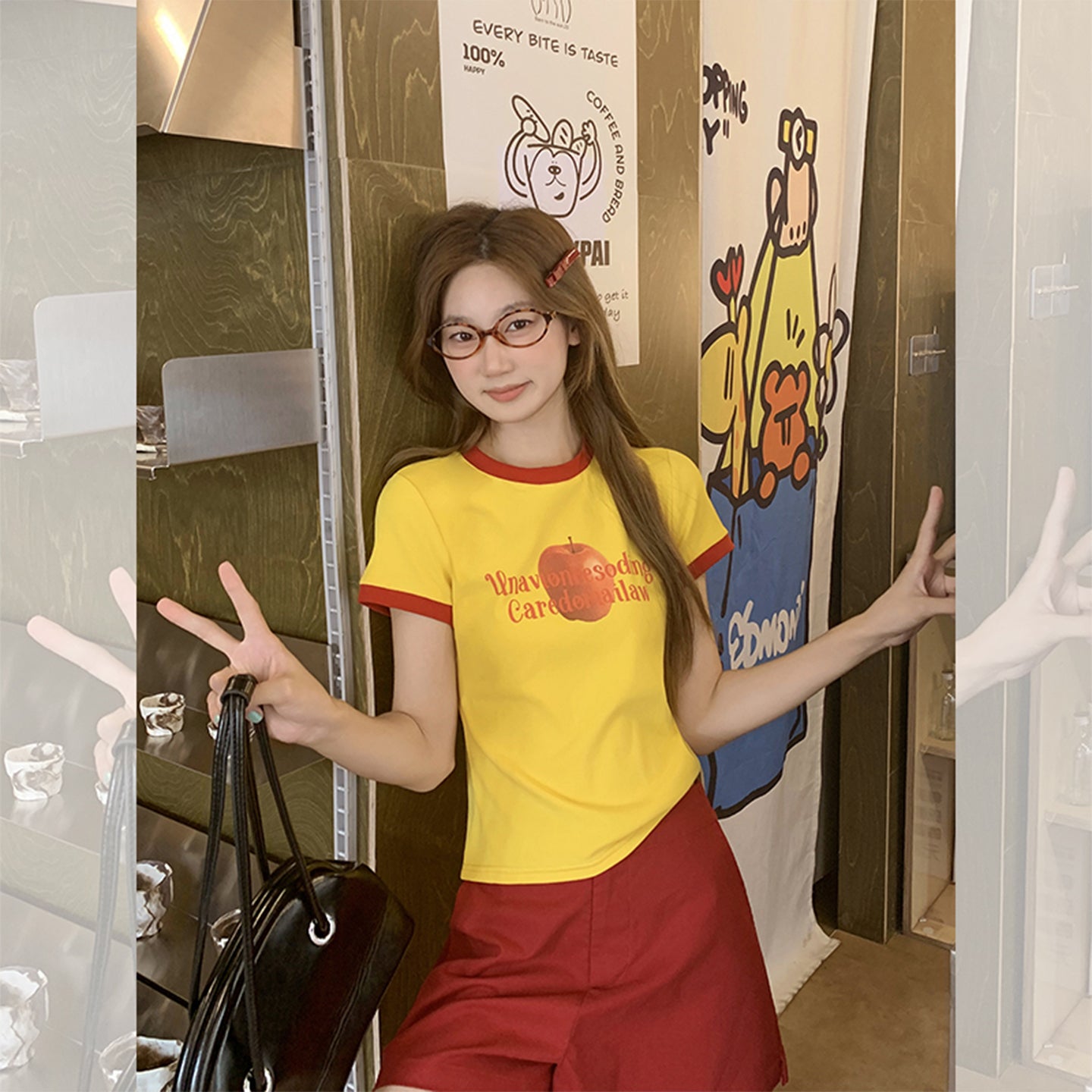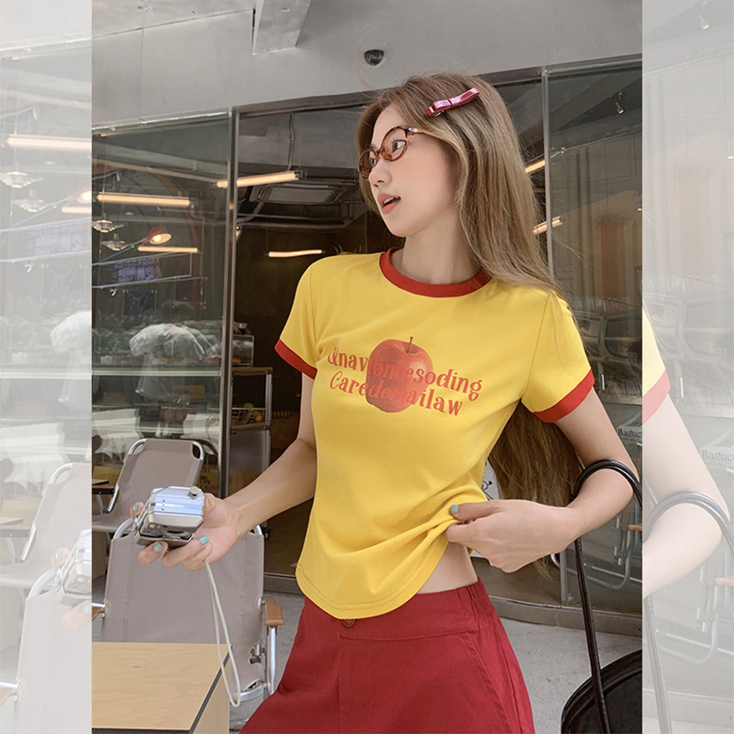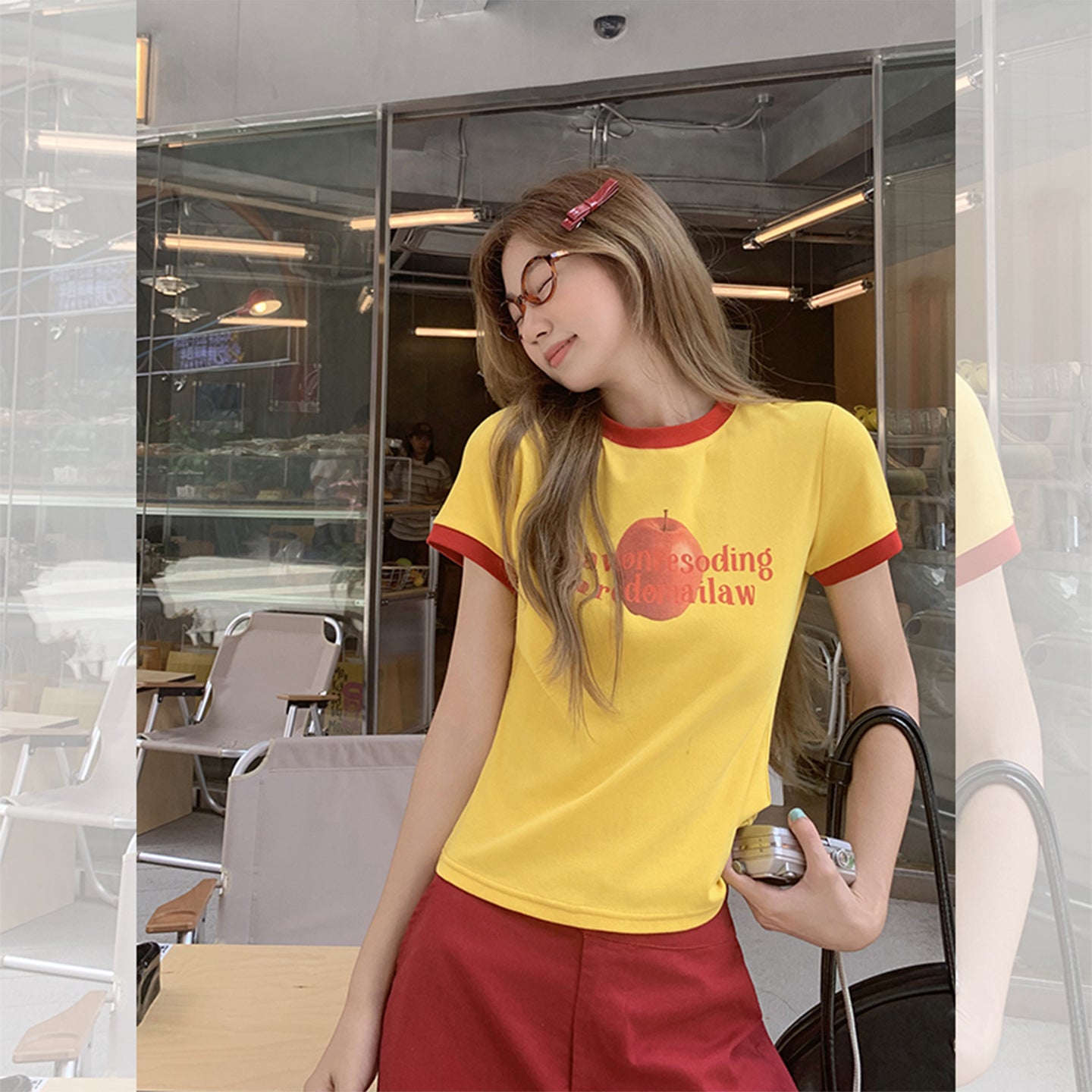 Fanciti Women's Top Apple Printed Color Block